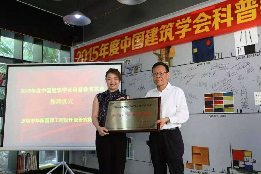 中国建筑学会向中国科学技术协会申报成为“全国科普基地”,并获得中国科学技术协会的认定与命名,颁发证书、牌匾。今年全国共有25家机构获评“中国建筑学会科普教育基地”,华阳国际是唯一一家深圳企业。