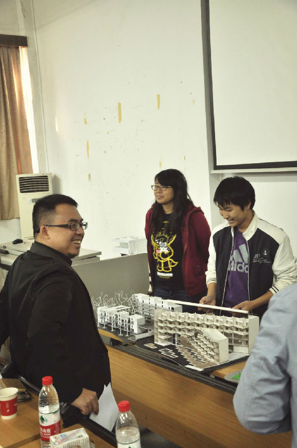 郑洲还笑谈到自己二年级时的设计作业,“他们比我们那时候做得好,一是方案成果表现出来的成熟度会比以前高了;二是表达的方式比以前丰富了很多,包括钢笔淡彩,SU模型渲染,丰富的排版等都是以前我们那代“穷”学生没有意识到这样做的这与现在的学生信息量丰富了,眼界与见识也要比之前的人更开阔。三是对模型的重视度很高,懂得用模型表达空间,这是一个很好的工作方法,毕竟建筑师是思考空间为主体,模型是最直观推敲与表达空间的手段。四是这次课程设计开始答辩训练,同学们都专门做了汇报的PPT来阐述自己方案的特点。汇报PPT不等同设计图纸的堆砌,其实是一个对自己方案特点的概括与提炼过程。是建筑师很重要的一个技能。从学生时代开始就有针对性地对其概括能力与口才表达能力的训练,是对比我作为学生时代很大的一个进步,对以后的职业实践生涯非常的有意义”。