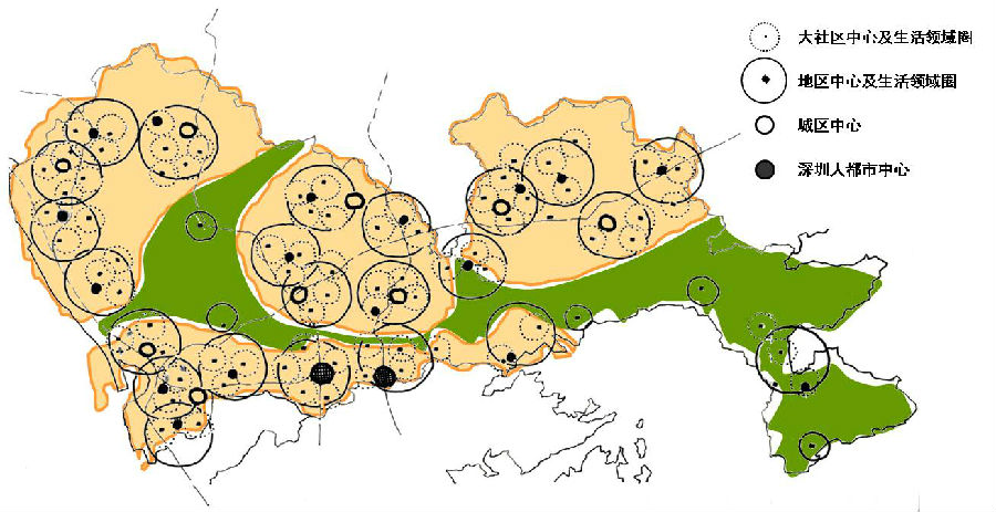 深圳城市发展是以多个类似招商局、华侨城、盐田港等“诸侯割据”的空间营造和分治模式而各显神通,同步开始的。今天超大规模的人口集聚已无法大一统地进行城市服务和运行,基于城市的人口集聚的特征划定城市发展组团,辅以匹配的机制,后经济特区将会出现“再诸侯”的现象,即继续分拆新行政区和特色社区为空间发展和社会建设单元。2008年深圳城市总体规划,就开始关注如何在更密的城市地区,关注公共中心体系所形成的城市空间组织模式,提供更多的和均质的城市公共服务。城市规划的资源配给以社区为单元,有效地服务于社会族群,共建和分享城市文明带来的福利。