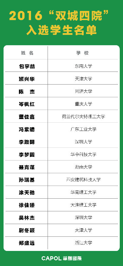 经过两轮严格评审,华阳国际第九届“双城四院”入选学生名单揭晓。来自海内外13所高校的15名学子获机会参加由华阳国际全额资助的“建筑&科技罗曼史”考察活动。