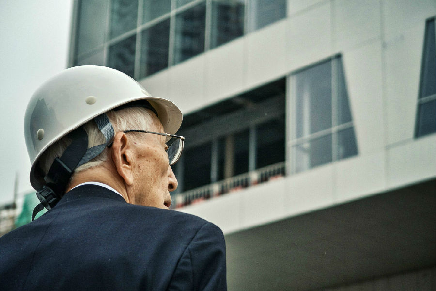 槙文彦先生于海上世界文化艺术中心施工现场。(摄影:张超)