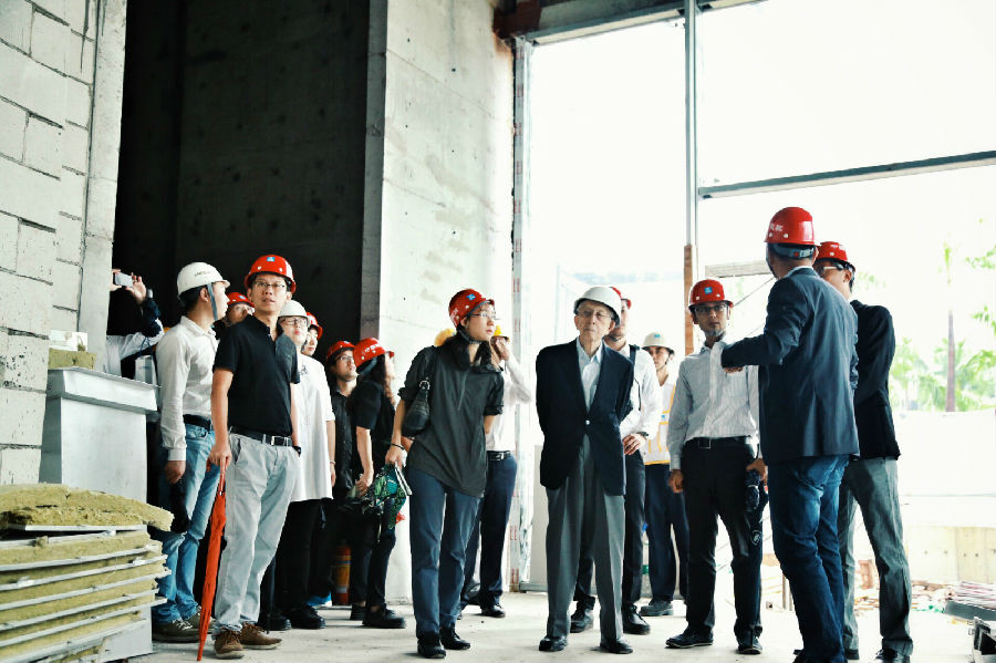 在一个多小时的巡查过程中,年近九十的槙文彦先生几乎走遍整个施工场地,详细了解施工进度及细节。目前,海上世界文化艺术中心幕墙已完成主要部分的施工,景观及室内部分刚刚启动,预计2017年上半年开馆。