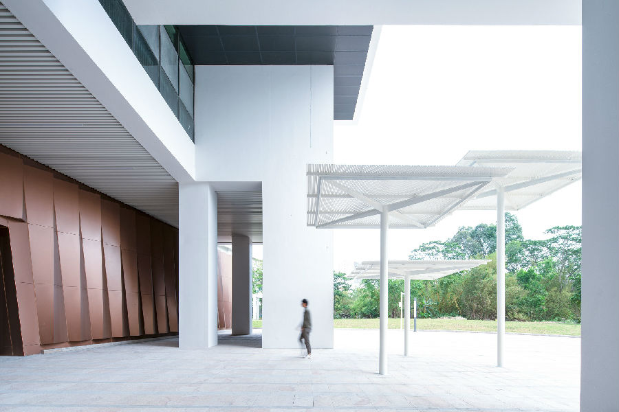 东南与西北角的两处退让设计,削弱了高层建筑带来的压迫感,让建筑更好融入校园。