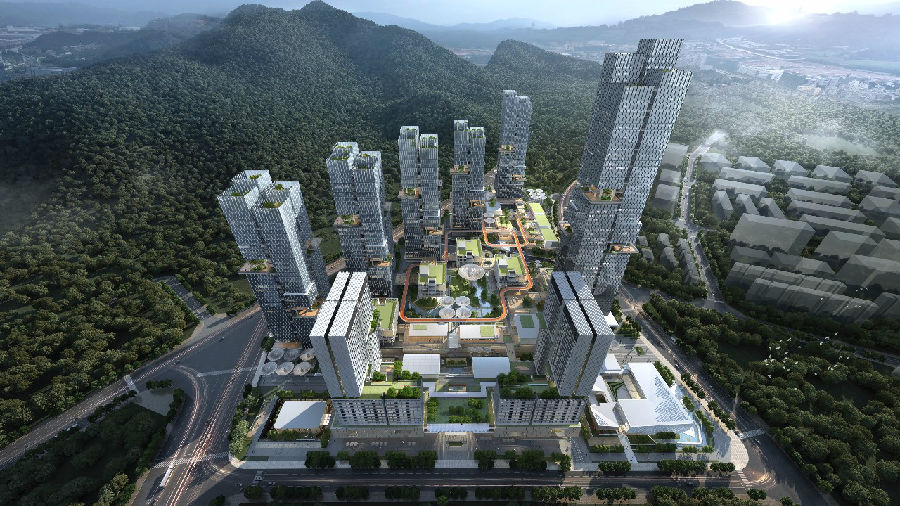 预审过后,我们遇到了一个考验:任务书中,新增了地标塔楼的规定位置,这样一来,原有的开放界面被打断了。在进一步优化过程中,通过调整居住建筑形态,来减少塔楼遮挡开放入口的影响,使方案仍保持面向城市开放的姿态,适应任务书的同时,很好地沿袭了最初的概念。除应对突如其来的变化,在建筑单体形态和立面等部分的不断优化,也使得整个项目能更好的达到设计的最初预想。