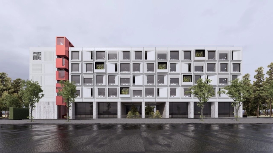 与实验楼相邻,是正在建设中的华阳国际东莞产业园办公楼(CAPOL Dream Office),这是一座华阳国际“自主设计、生产建造、运营使用”全流程参与的梦想办公建筑,原创方案自首届华·工坊设计竞赛脱颖而出,聚焦百年企业永不褪却的经典与纯粹,灵感源于“中国古代活字印刷术的可复制概念”。