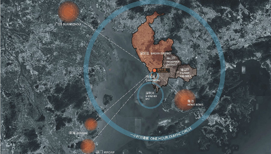 湾区产业投资大厦项目位于宝安中心区西侧核心商务区,建筑限高150米,距离西侧海岸约600米,与大铲湾“互联网+”未来科技城隔海相望。