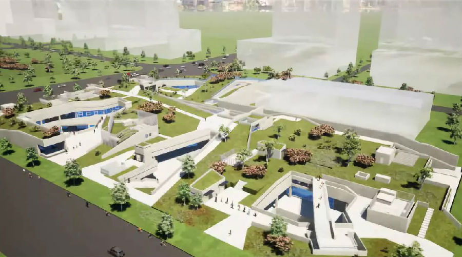 项目作为综合服务功能的地景建筑,半藏于地下,与原始地形、周边环境相协调,形成高差多变,步移景换的建筑空间。采用全专业正向设计方式“挖掘”BIM应用的深度与广度,在可视化设计模拟、参数化数模联动设计、多专业协同、分析计算方面不断探索,提高设计成果质量,管控设计进度。