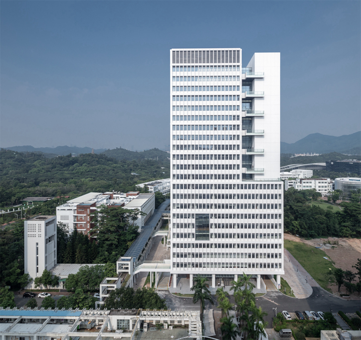 项目位于深圳南山高新科技发展轴上,是校园新科研实验区的起点。集合教育、研究、产学研结合及国际交流等功用于一身,致力于打造开放活跃、鼓励学科交流共享的第三代实验室建筑。