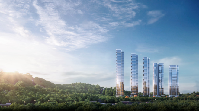 以海之门为设计灵感,以百年建筑远见,像造飞机一样精细造房子,定义滨海生活理想与居住品质。