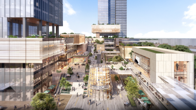 以“城市共生、云栖画卷”为指引,在长宽比4:1长条形地块,描绘一幅集城市社交、娱乐、艺术、生活于一体的活力画卷,重塑空间目的地,赋予城市激动人心的画面。