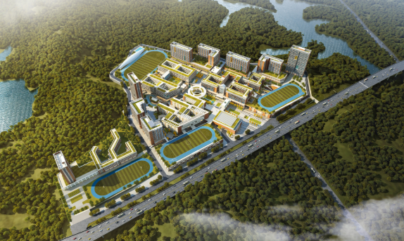 教育产品研发集中体现,独创跨街连板,构建双十字轴,以资源共享,解题高密度下超大型校园,共建友好城市。