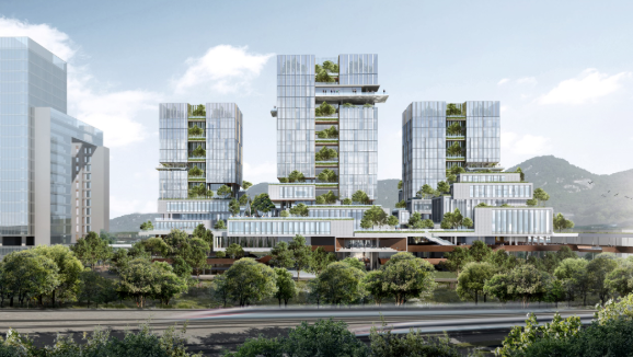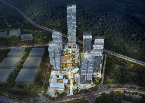 深圳主轴,北站商务中心区,华阳国际总部大厦,拒绝平庸,大胆求变,以“高线上的设计公园,山城间的创意枢纽”回应场地关系,链接全城,链接未来。