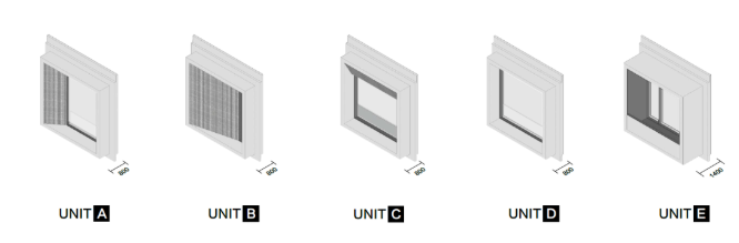 最终,形体立面选定5种PC构件,