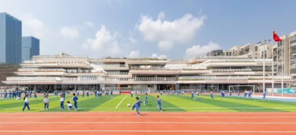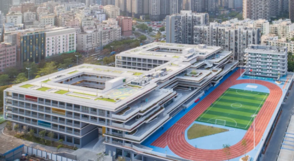 在快速城市扩张与模板化校园的城市背景之下,华阳国际历经多次产品迭代,首次在龙华区教科院附属实验学校引入装配式技术,打造高品质活力校园。
