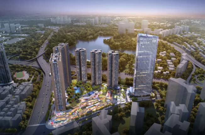 项目位于深圳龙华梅林关口,紧临梅观高速,坐落于地铁21/22号线横岭站之上,容积率6.1,总建筑面积约45万㎡,包括200m的甲级写字楼,三栋超高层住宅,两栋公寓,以及3万㎡的综合商业步行区。