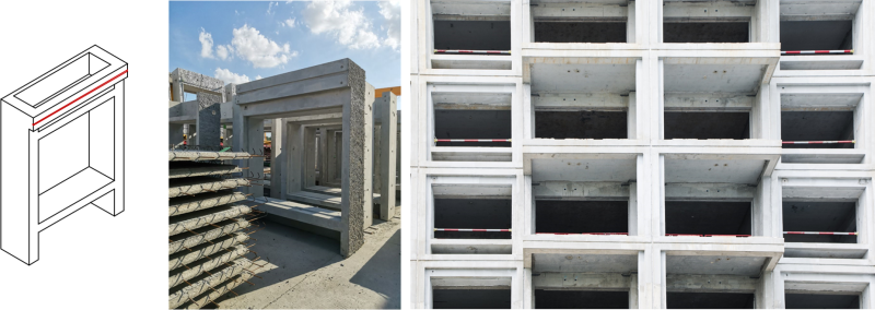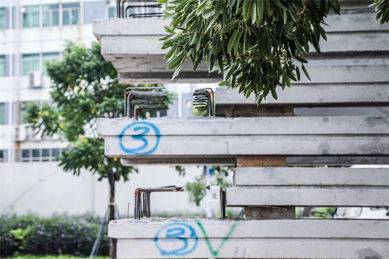 如何实现构件收边控制达到与效果图一致并还原装配式之美效果,是设计与建造过程的关键难点。为此,设计转变以往浇筑吊装后再抹灰粉刷的处理方式,通过特别设计的卡子,既是完整的金属收边,又可以保护油灰等填充物,形成与玻璃幕墙一样的秩序美感。