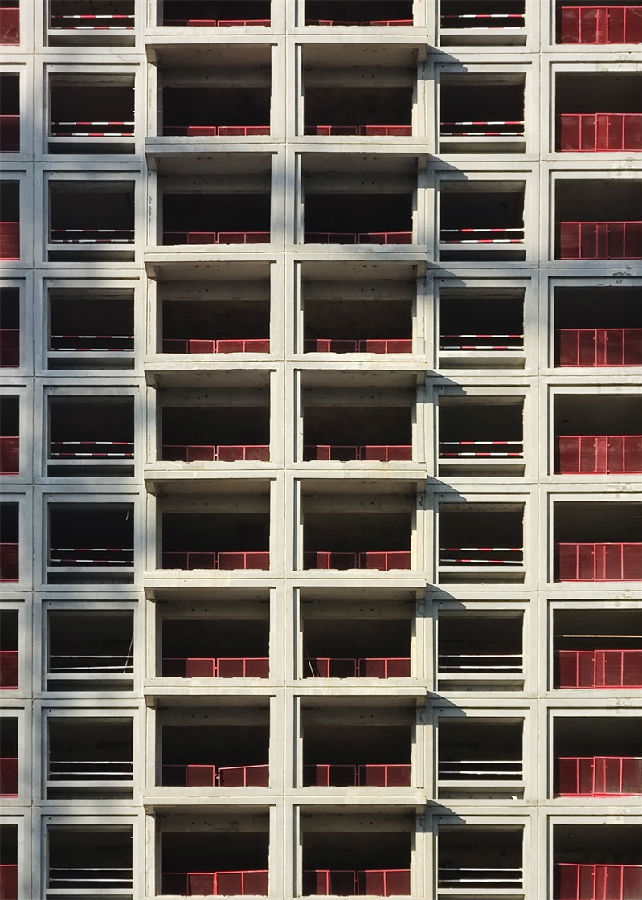 究其原因,居住建筑功能特征决定它与装配式美学表达之间存在难点:首先,设计以功能为导向,开间尺寸等不固定导致立面无法形成完整数据;其次,在立面的进退上,多凸窗、空调外挂、阳台让立面繁杂;再次,技术上存在难点,构件在生产运输和安装过程中容易崩角,需抹灰等二次处理;最后,产品固化,户型间距、日照等规范限制下,留给建筑创作范围较少。