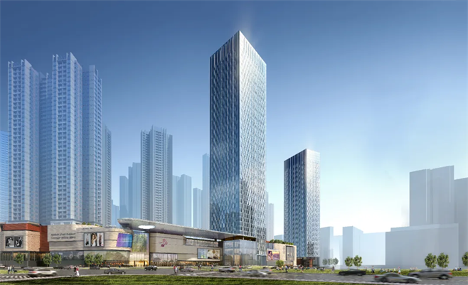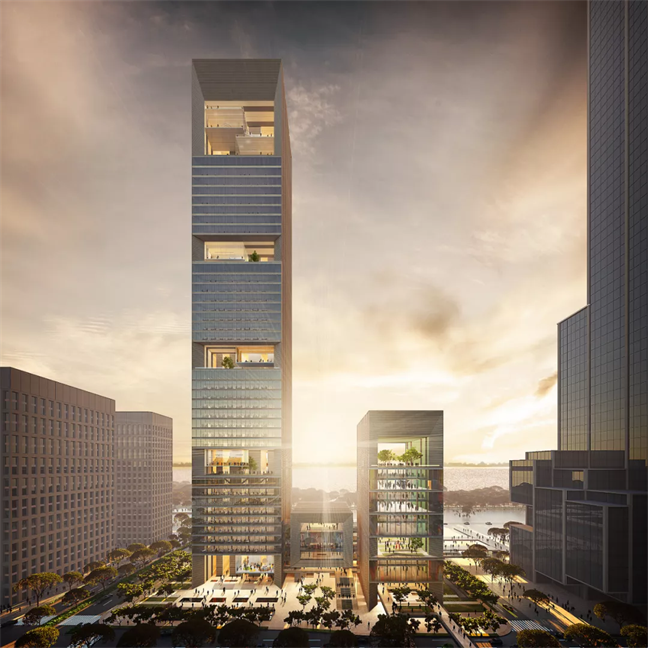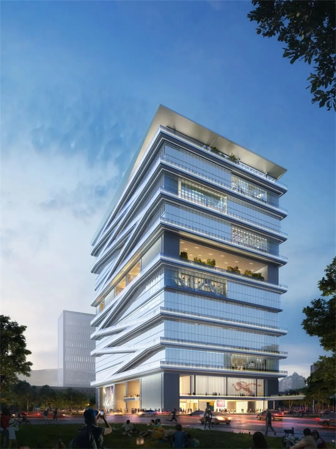 三个建筑体量采用垂直线型结构,内挑空间、空中大堂及空中花园有机结合,赋予建筑鲜明特征,打造湾区新地标。