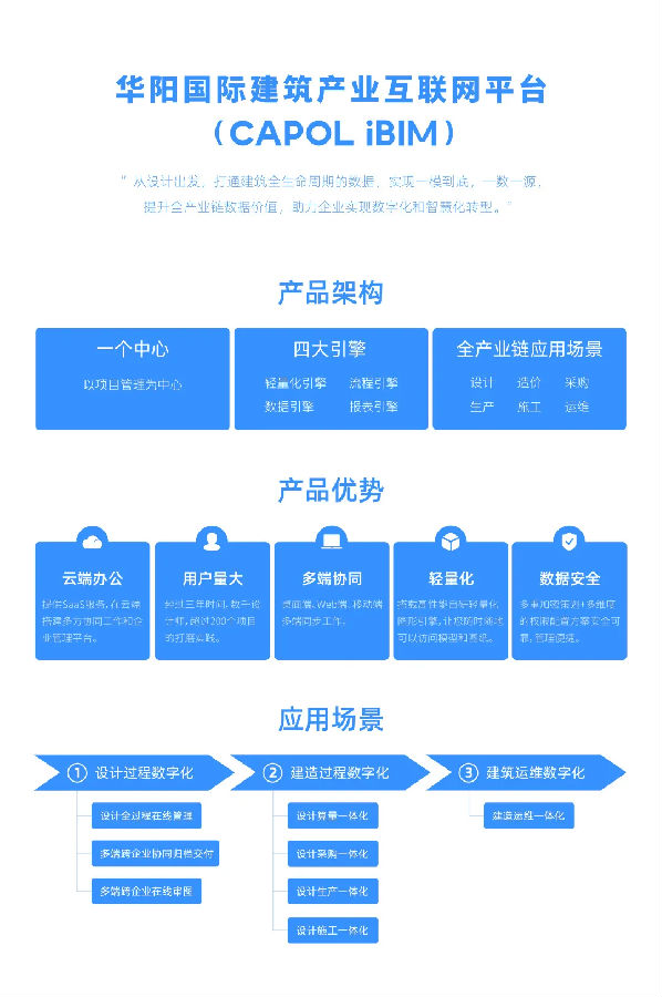 目前,华阳国际基于BIM核心技术,以设计为起点,以项目为中心,通过跨企业协作共进,逐步推进建筑全产业链数据互联互通。多年潜心,我们自主研发建筑产业互联网平台CAPOL iBIM,与提质增效的设计平台CAPOL 3D和CAPOL 2D等,朝向“平台赋能+科技驱动”的设计科技企业迈进。