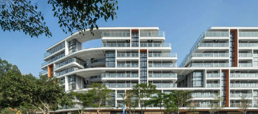 区别于当下密集的超高层住宅,项目以多层组团回应地形,以立体绿化、共享空间与装配化技术,让建筑在山体间生长出层次与温度。华阳国际从规划到建筑、景观、室内全程参与,实现小巧精致而富有呼吸感的生活场景。